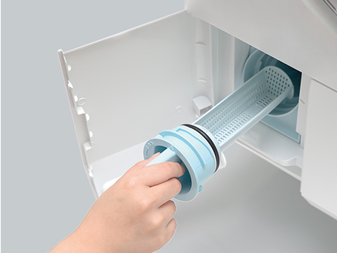 Bộ lọc dạng lưới giữ lại xơ vải thoát ra khi giặt hoặc vệ sinh gioăng cửa.
