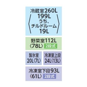 | Cấu tạo tủ lạnh | Ngăn cấp đông: 117 Lít Ngăn đá: 20 Lít Phòng lạnh ẩm: 260 Lít Phòng rau: 112 Lít |